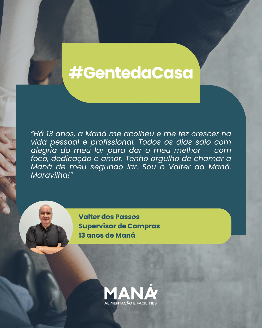 Com dedicação e amor pelo que faz, ele encontrou na Maná um segundo lar e a gente tem orgulho de fazer parte dessa história. Reconhecer